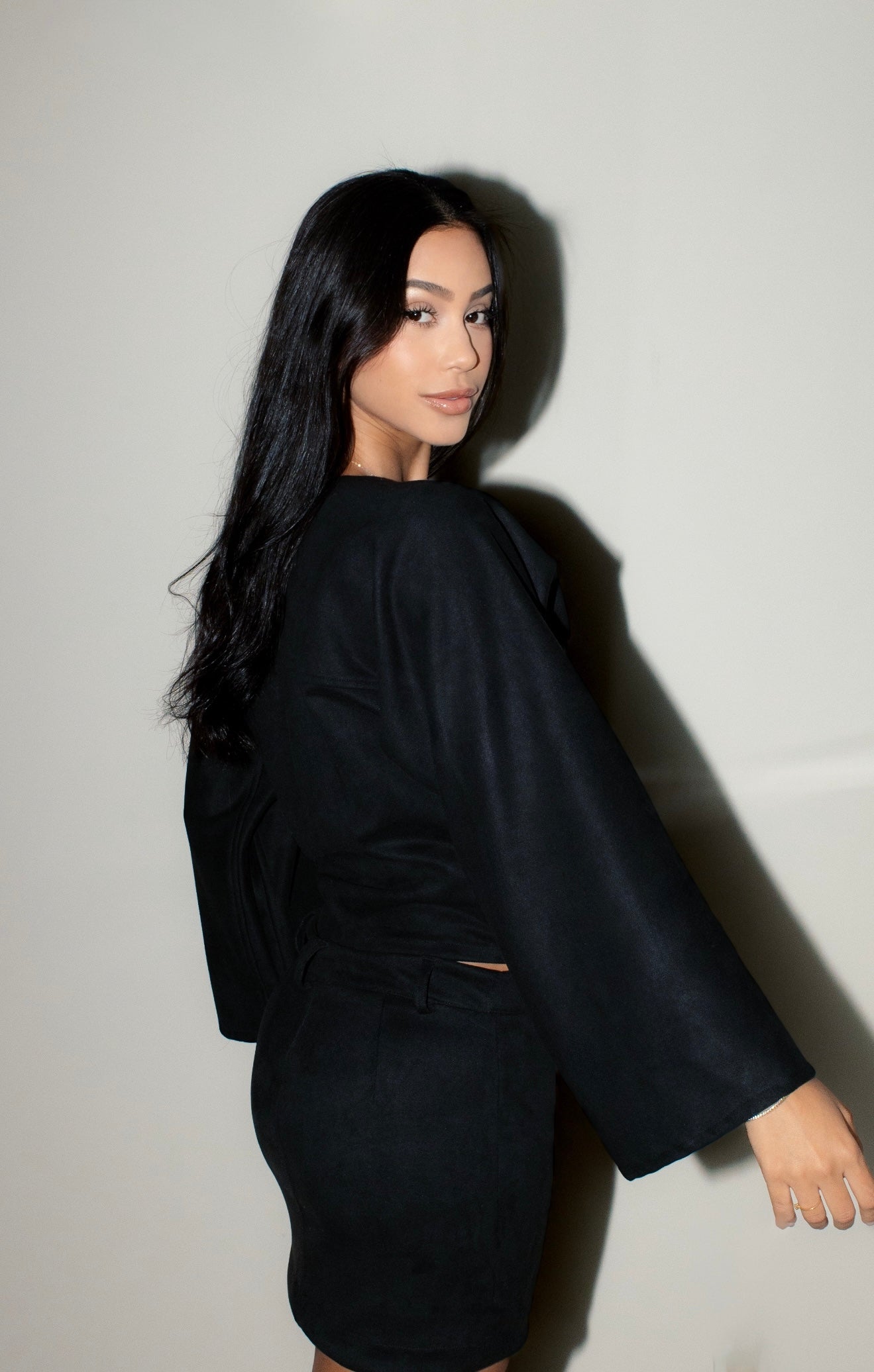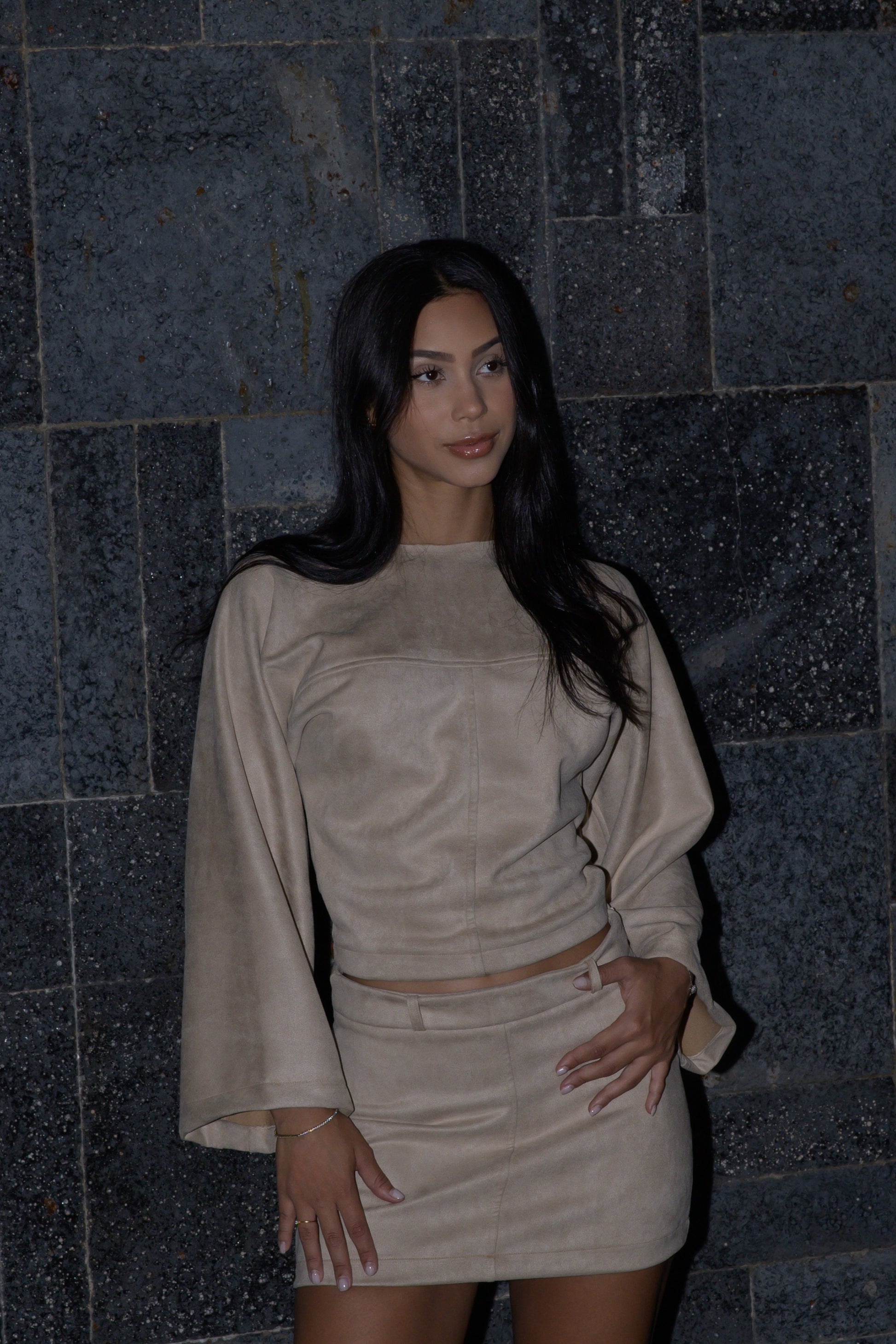 Blusa com acabamento e design especiais, garantindo um look autêntico e atemporal. A textura e o toque da camurça traz ainda mais sofisticação para esta peça única.